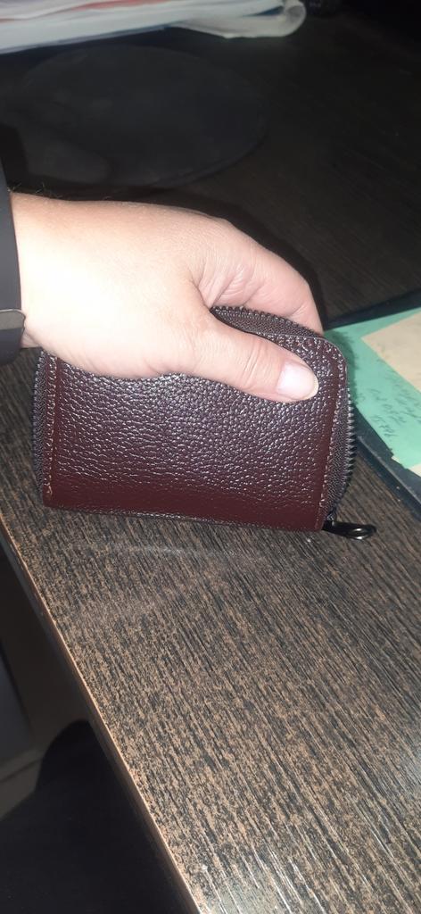 Кожей не пахнет. Но выглядит как кожаный. Змейка метал, как на фото. Под ячейками для карточек есть свободное пространство. Так что мелочь все время туда сползает в эту пустоту и попадает на противоположную сторону кошелька. Если змейка открыта полностью, то есть возможность выпадания мелочи . В общем кошелек удобный и практичный. Мелочь удобно искать. Деньги помещаются впритык к змейке. Надо аккуратно ее закрывать, что бы не задеть бумажные деньги.