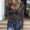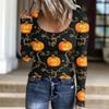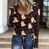 Женский модный повседневный свитер с длинными рукавами и принтом на пуговицах в стиле Хэллоуина