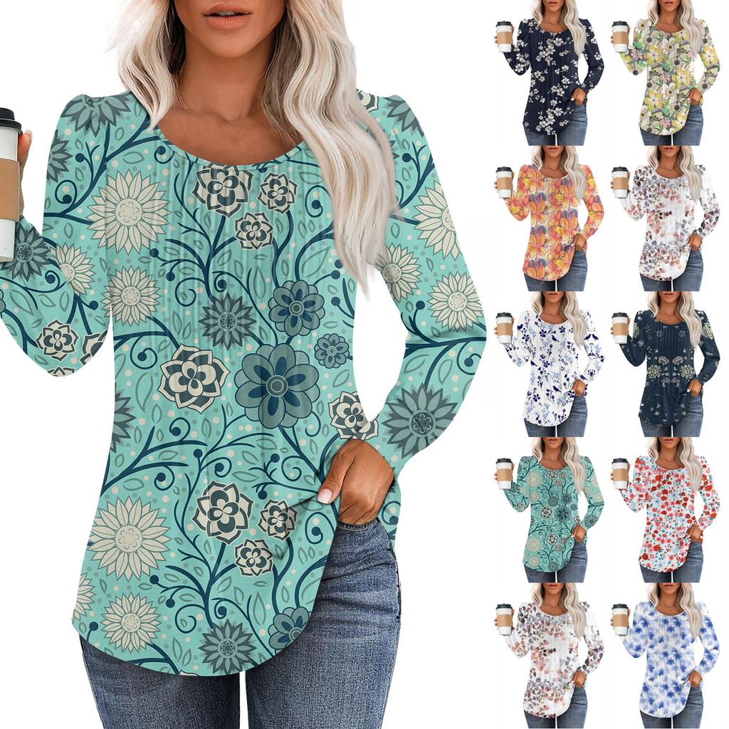 Рубашки с длинным рукавом для женщин, футболки с милым принтом и графикой, блузки, нарядные повседневные блузки, плиссированные топы-туники с овальным вырезом — купить товар онлайн с бесплатной доставкой по всему миру!