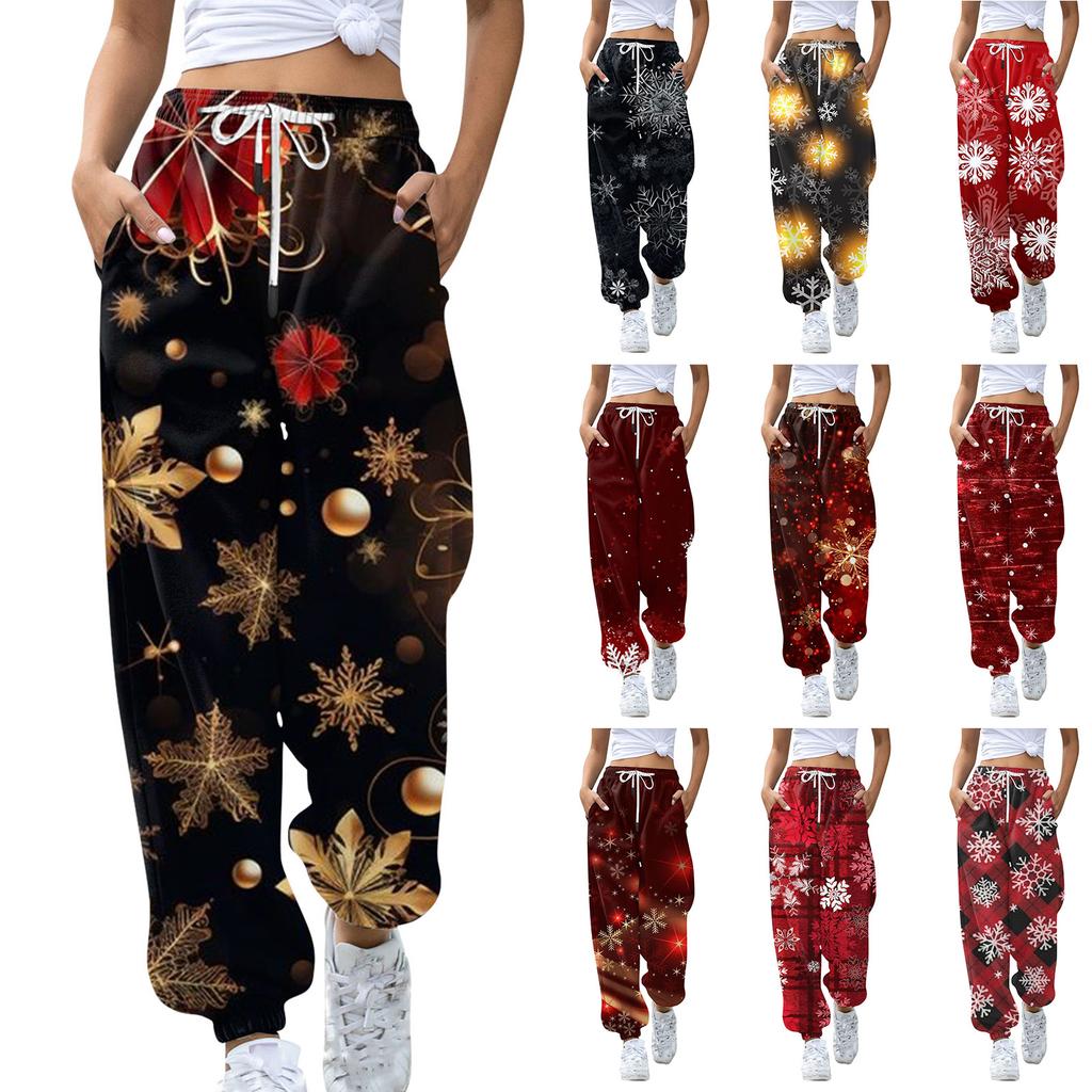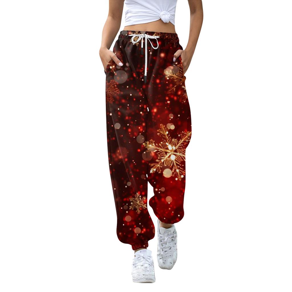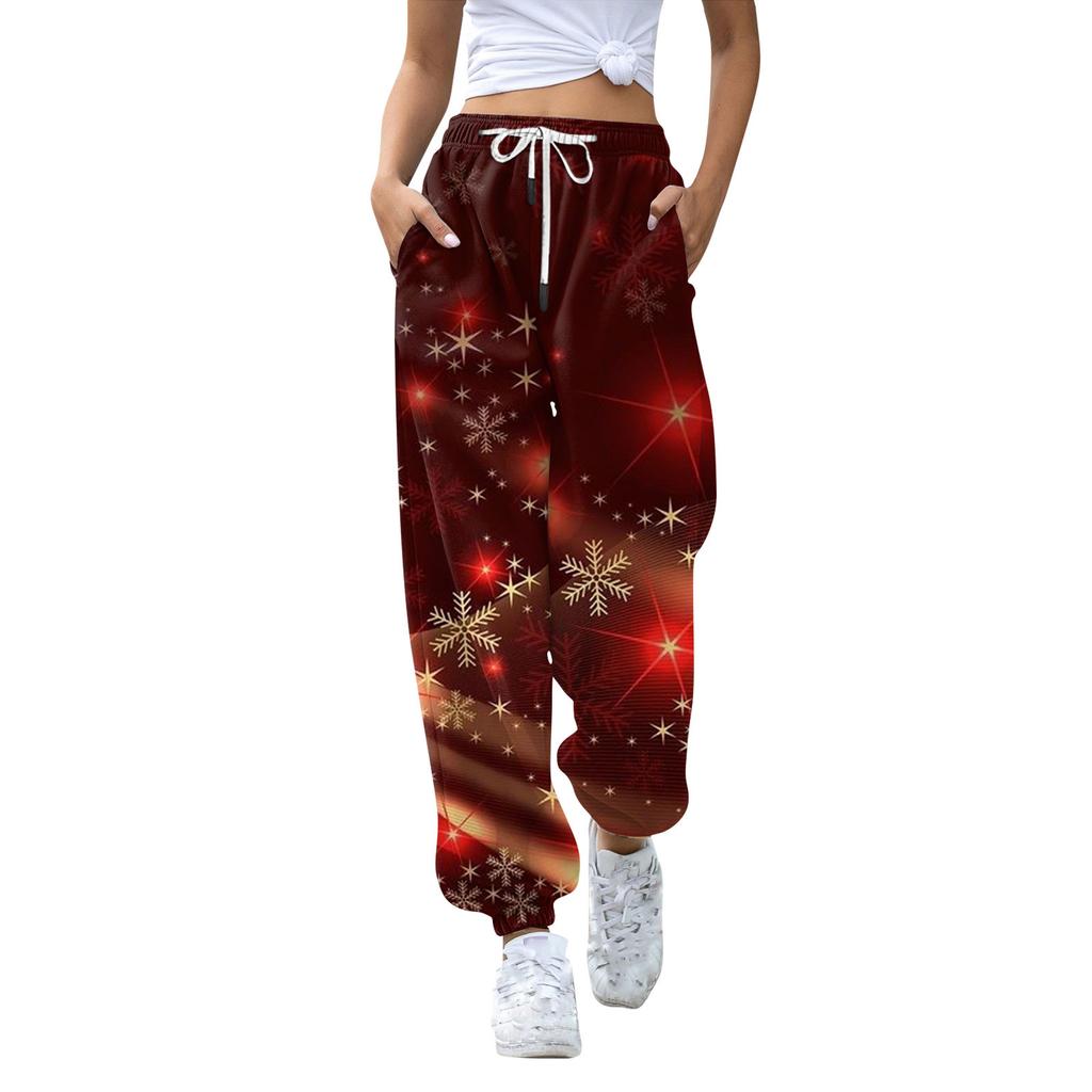Женские повседневные модные рождественские принтованные повседневные спортивные брюки с эластичной талией и завязками на шнурке