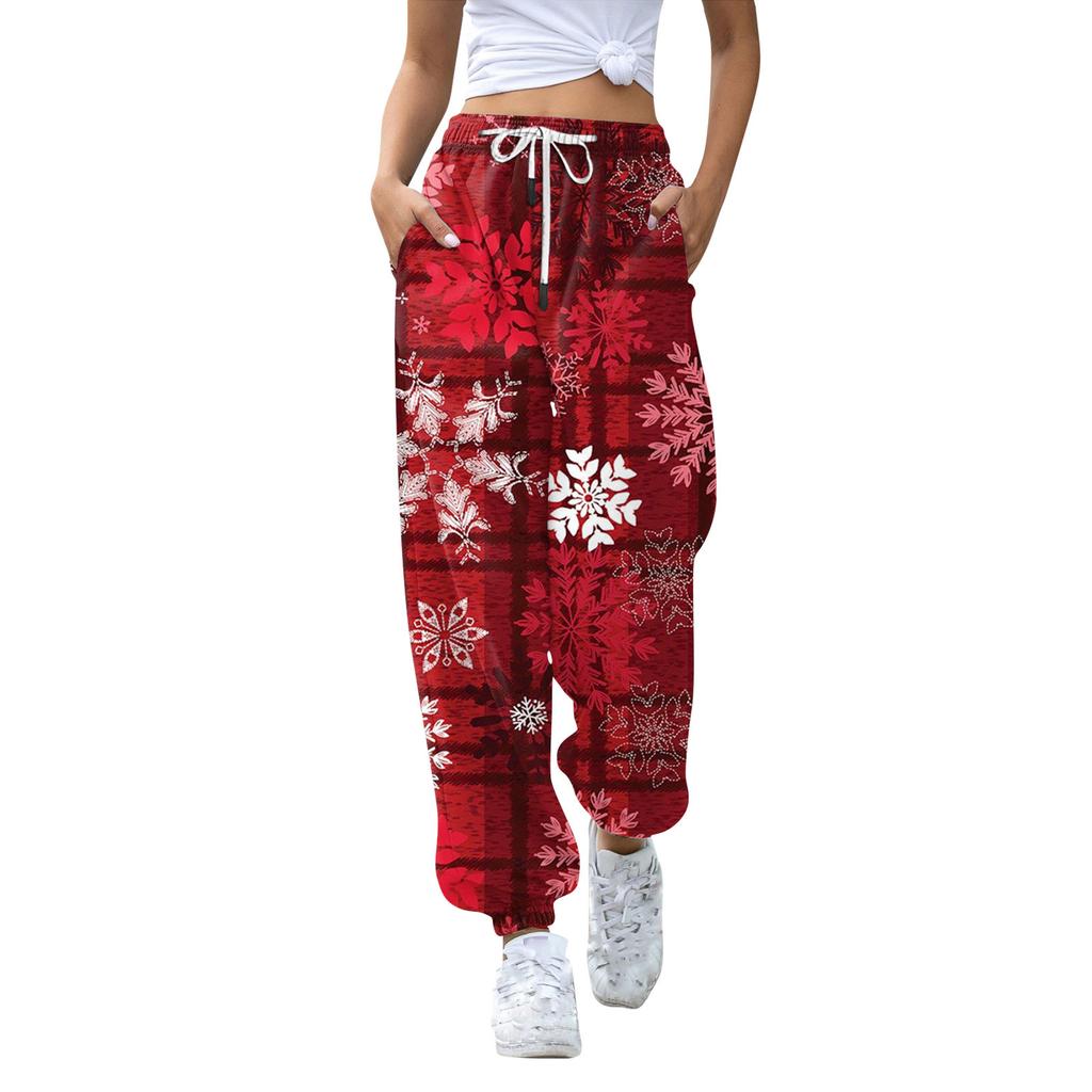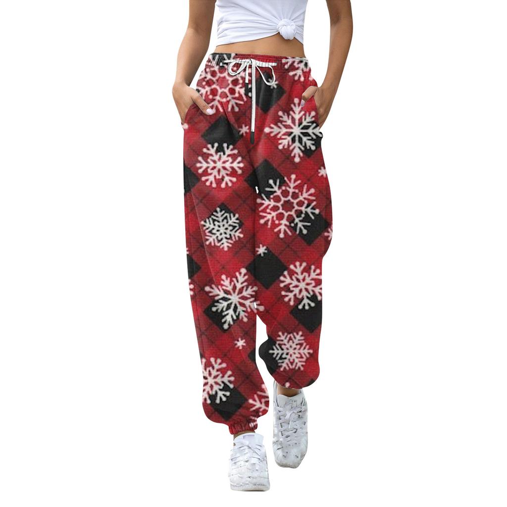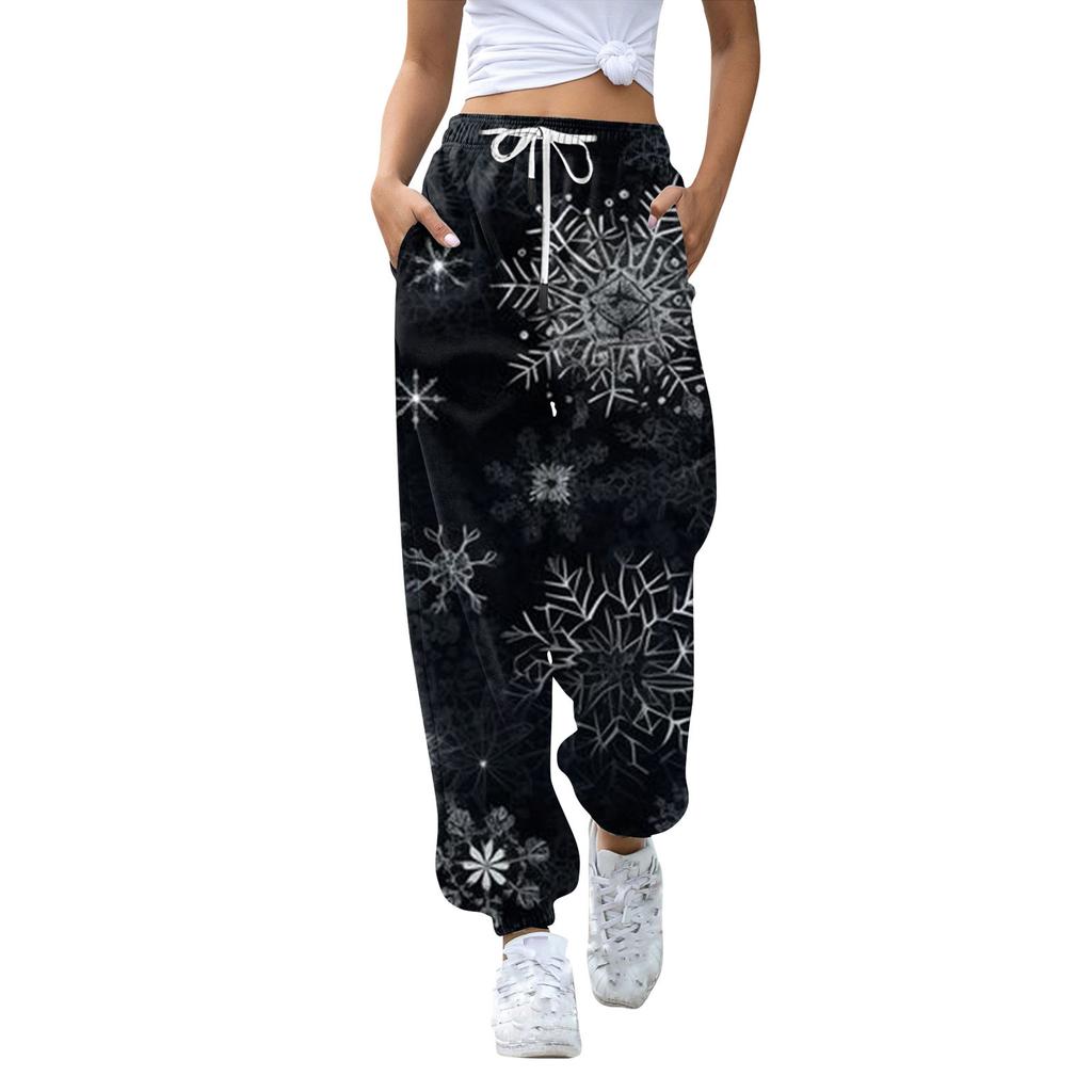 Женские повседневные модные рождественские принтованные повседневные спортивные брюки с эластичной талией и завязками на шнурке