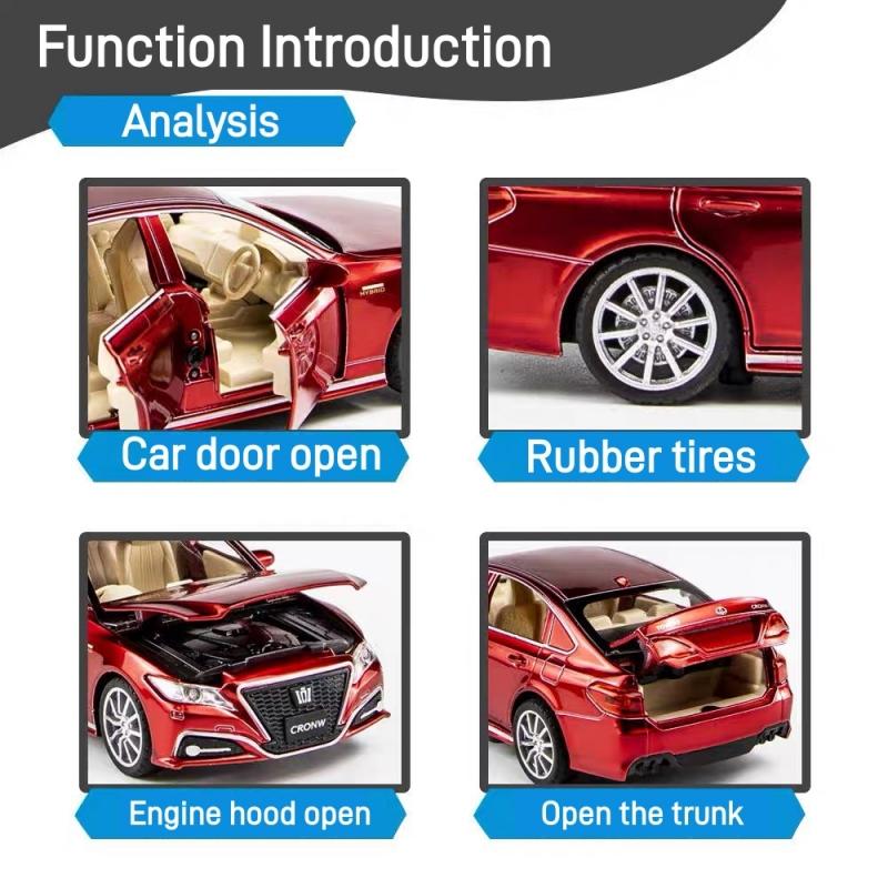 1/32 Toyota Crown Alloy Luxury Sedan Модель автомобиля Литая металлическая игрушка Высокая имитация Звук и свет Инерционный механизм Коллекционные предметы Подарок детям
