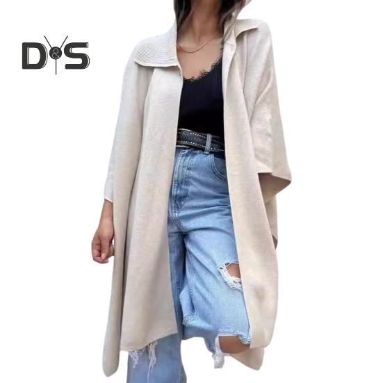 Расслабленный Fit: Наслаждайтесь свободным кроем этого женского кардигана со свободно спущенными плечами и лацканами для создания шикарного и удобного образа.