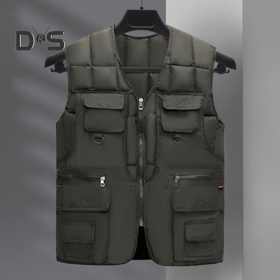 Функциональность: Этот зимний жилет с 10 карманами разных размеров предлагает достаточно места для хранения таких необходимых вещей, как ключи, кошелек и мобильный телефон.. Универсальный дизайн с V-образным вырезом и застежкой-молнией добавит удобство и стиль вашему образу.. Этот жилет идеально подходит для ношения поверх рубашек с длинными рукавами или свитеров и отлично подходит для переходного периода весной, осенью и зимой.