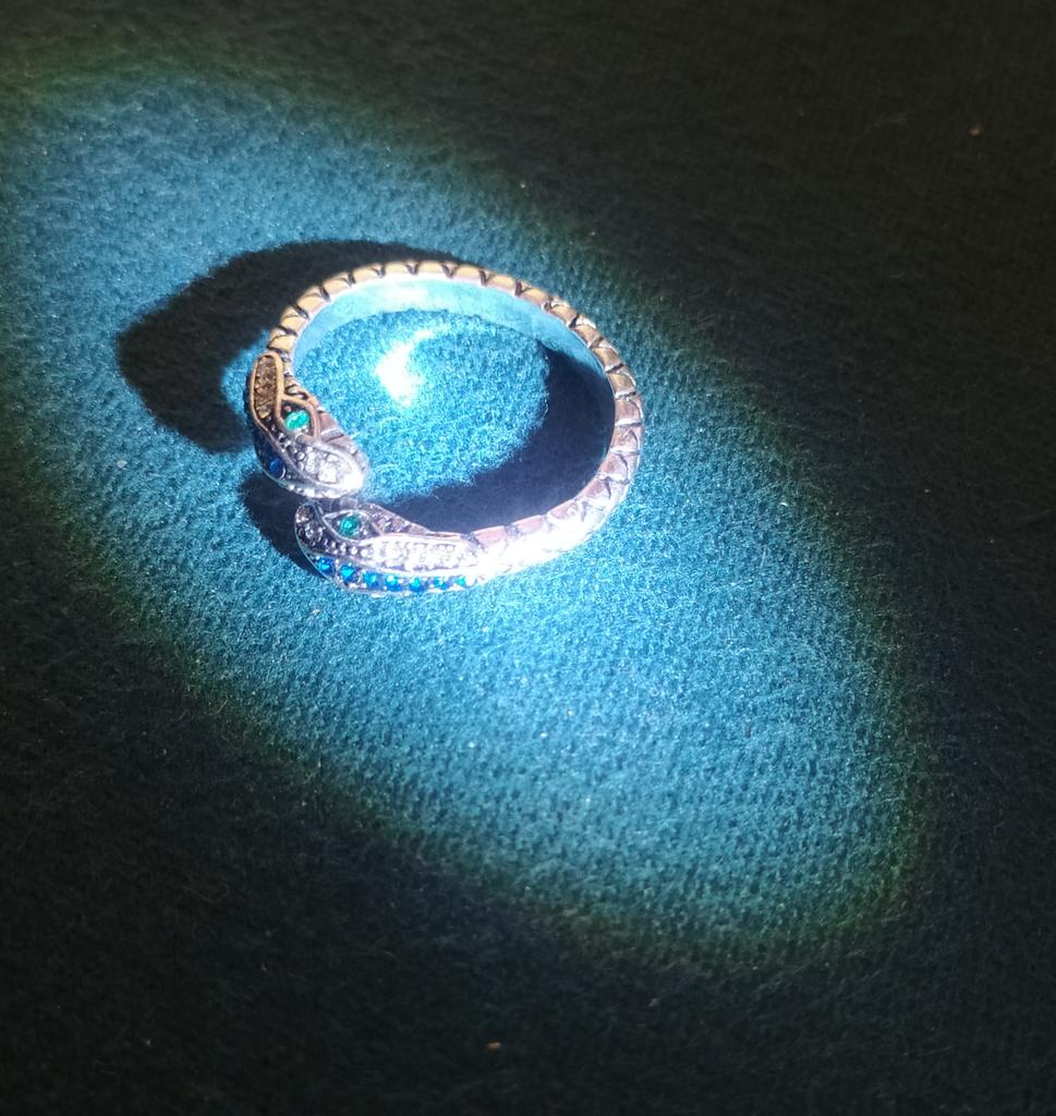 Что, новый хозяин, надо? Представляю вам на обзор колечко в виде двух змеек с зелёными глазами. Кольцо привлекательное и яркое. Исполнение отличное. Стразы, кроме зелёных, ещё и синие и бесцветные, сверкают на свету. Кольцо на любой палец, легко раздвинуть и сомкнуть. Лёгкое, на пальце не чувствуется. При ношении мной, попадало под воду не раз и осталось в своём виде. Смотрите фото и видео. Очень симпатичное. Я по гороскопу змея и мне колечко по душе. Всем вам желаю приятных покупок.