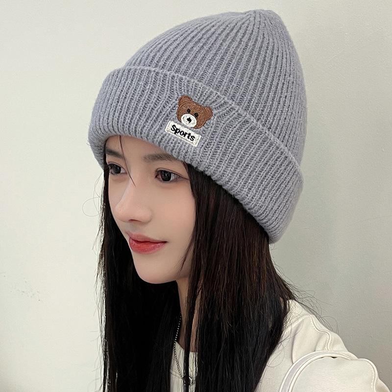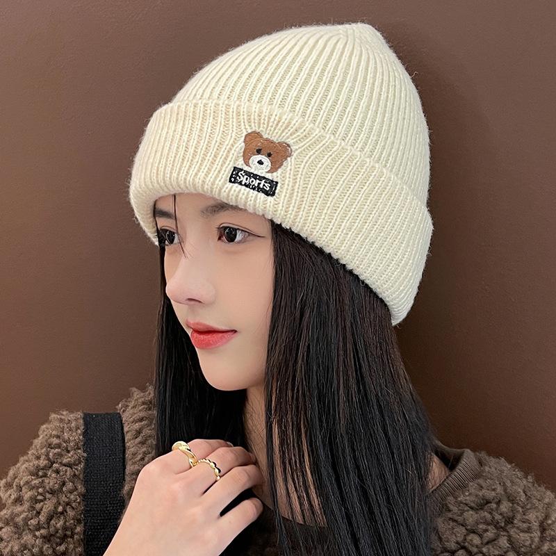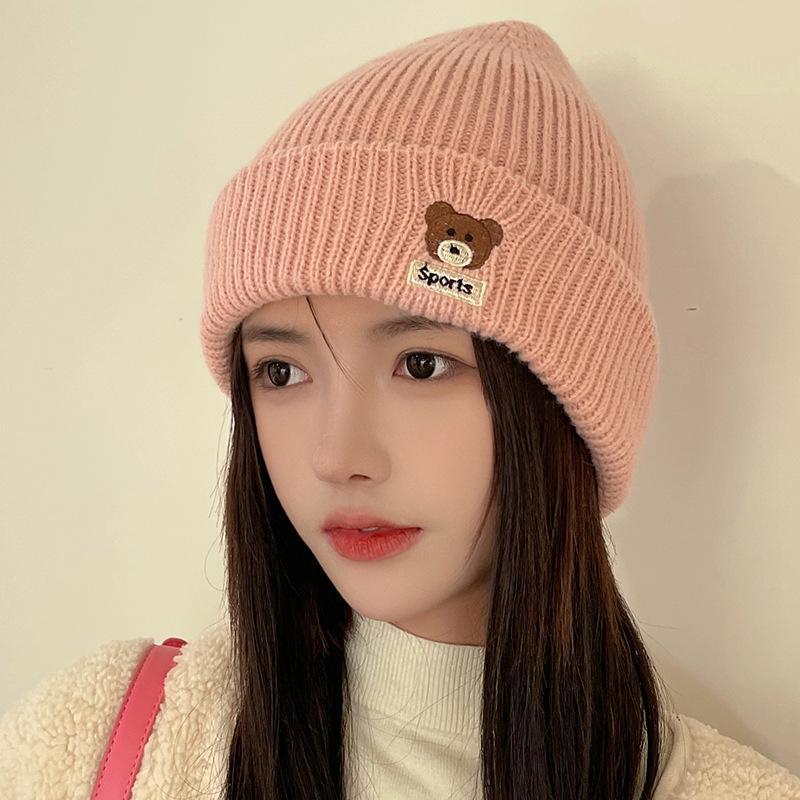 Милая шерстяная шапка с медвежонком на осень-зиму, толстая теплая вязаная шапка для студентов, защита ушей, холодная шапка для женщин