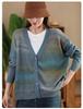 Johnature Женское осеннее модное повседневное трикотажное пальто с цветными блоками и V-образным вырезом в китайском стиле с длинными рукавами в винтажном стиле