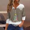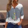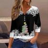 Жен. Футболка Футболка С принтом Пуговицы Рукав 3/4 Повседневные Выходные Мода Классический Классический V-образный вырез Обычный Верх — купить товар онлайн с бесплатной доставкой до всему миру!