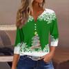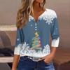 Жен. Футболка Футболка С принтом Пуговицы Рукав 3/4 Повседневные Выходные Мода Классический Классический V-образный вырез Обычный Верх