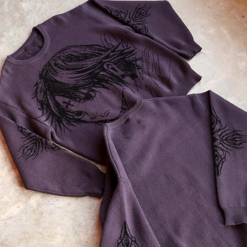 Y2K вязаный аниме свободный жаккардовый свитер одежда для мужчин и женщин — купить товар онлайн с бесплатной доставкой до всему миру!