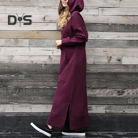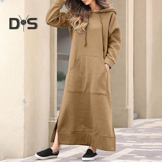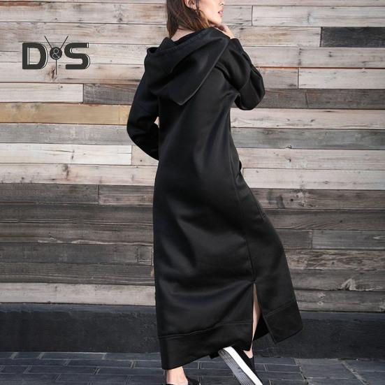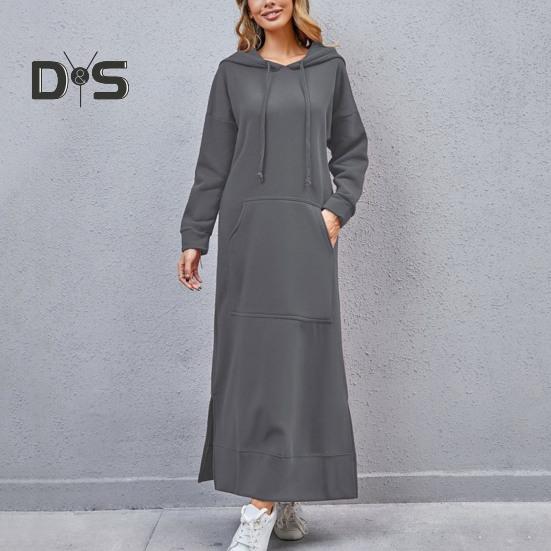 Прямой крой и большие карманы придают дизайну нотку практичности.. Это платье с капюшоном на шнурке и особым дизайном с боковыми разрезами идеально подходит для ленивых дней или повседневных прогулок..
