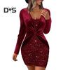 Представляем наше потрясающее бархатное платье с V-образным вырезом, в котором вы будете чувствовать себя элегантно и уверенно в любом случае.. Это платье с длинными рукавами и изысканной вышивкой пайетками создает роскошный и привлекательный образ..