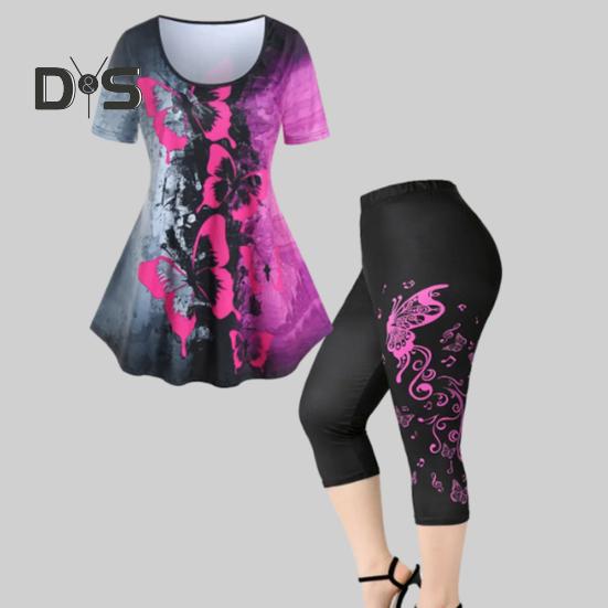 Удобный и стильный: Этот комплект состоит из свободного топа с круглым вырезом и принтом в сочетании с брюками для бега с эластичной талией и узкими штанинами для удобной посадки, не чувствуя себя тесным или неудобным.