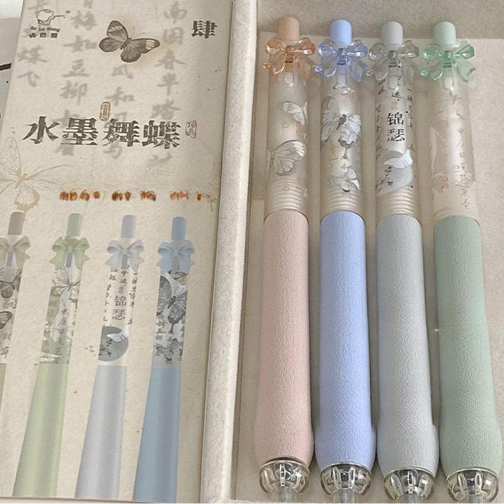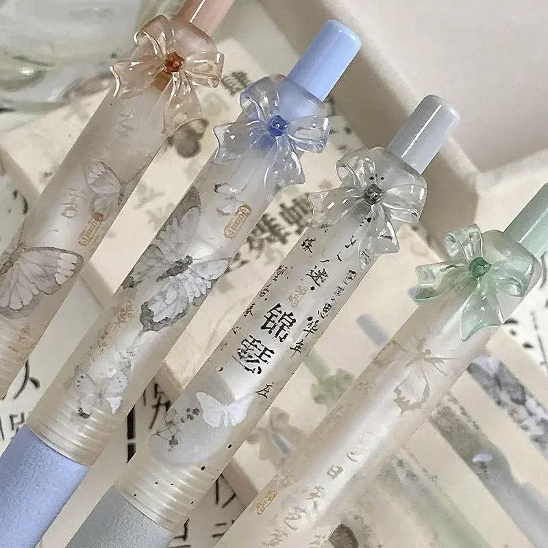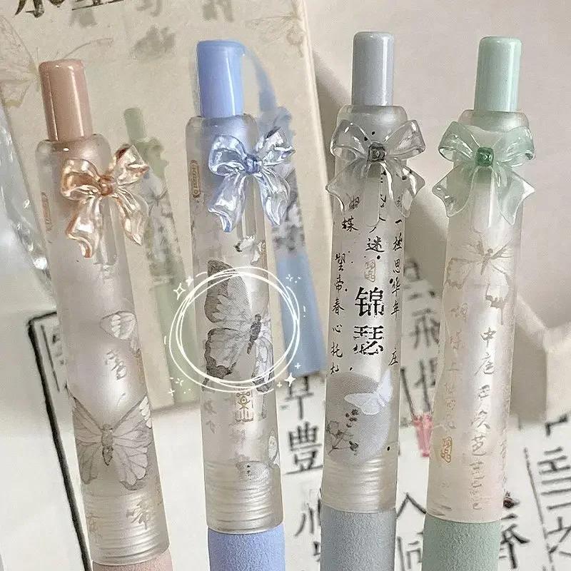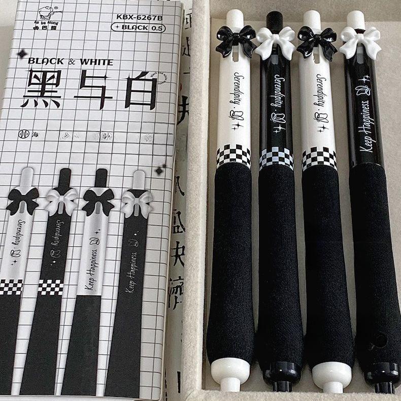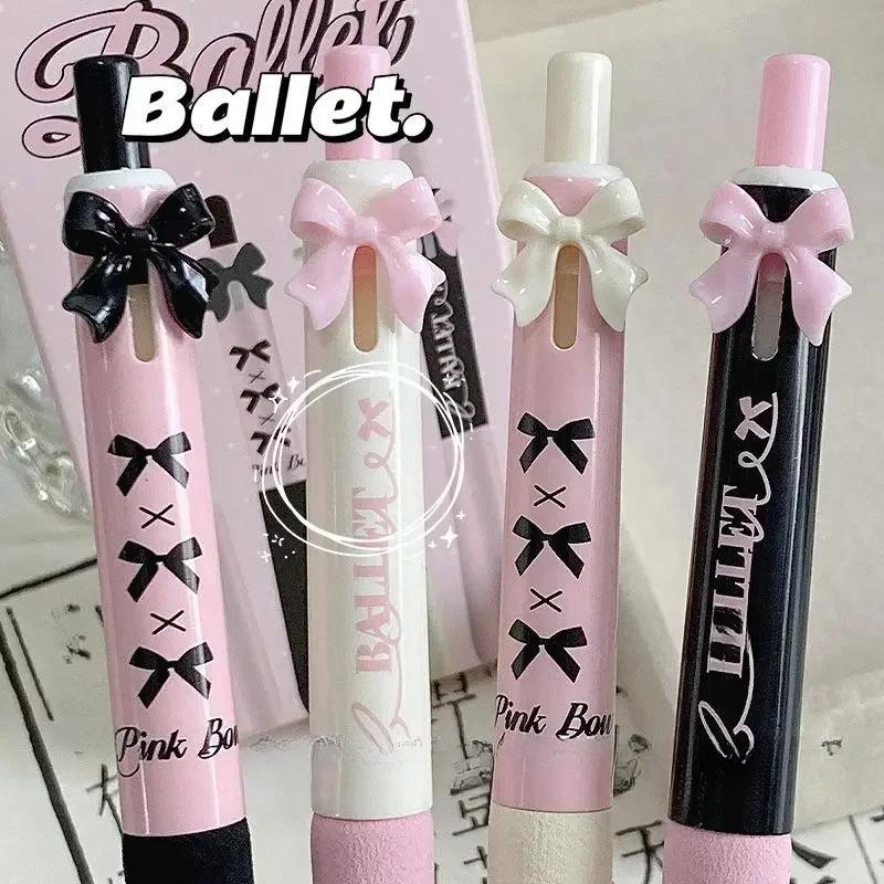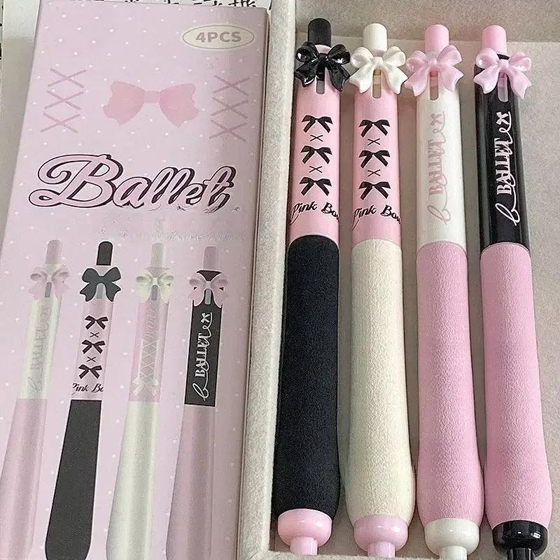 4 шт./упаковка, корейская гелевая ручка Sweet Chic для девочек, черная, розовая, белая, с бантом, канцелярская гелевая ручка 0,5 мм, черная ручка для письма в школе