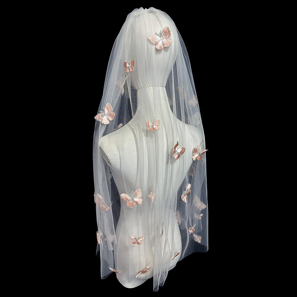 Розовая бабочка Фата Сертификат Регистрация Невеста Свадебный головной убор Супер Фея Фотография Фото Реквизит Фата Головной убор