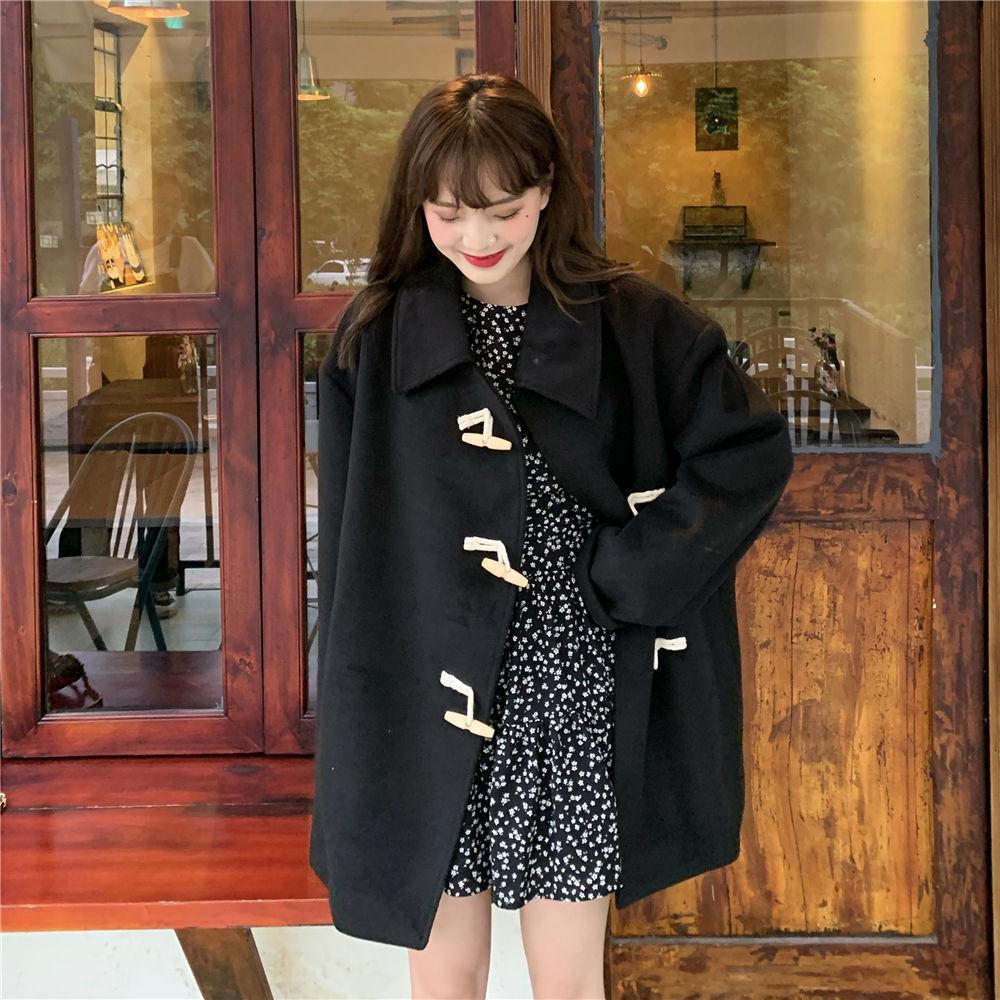 Женский зимний шерстяной однобортный пиджак с пряжками в китайском стиле, шикарный, универсальный, черный, модный, свободный, с отложным воротником, повседневный, новый