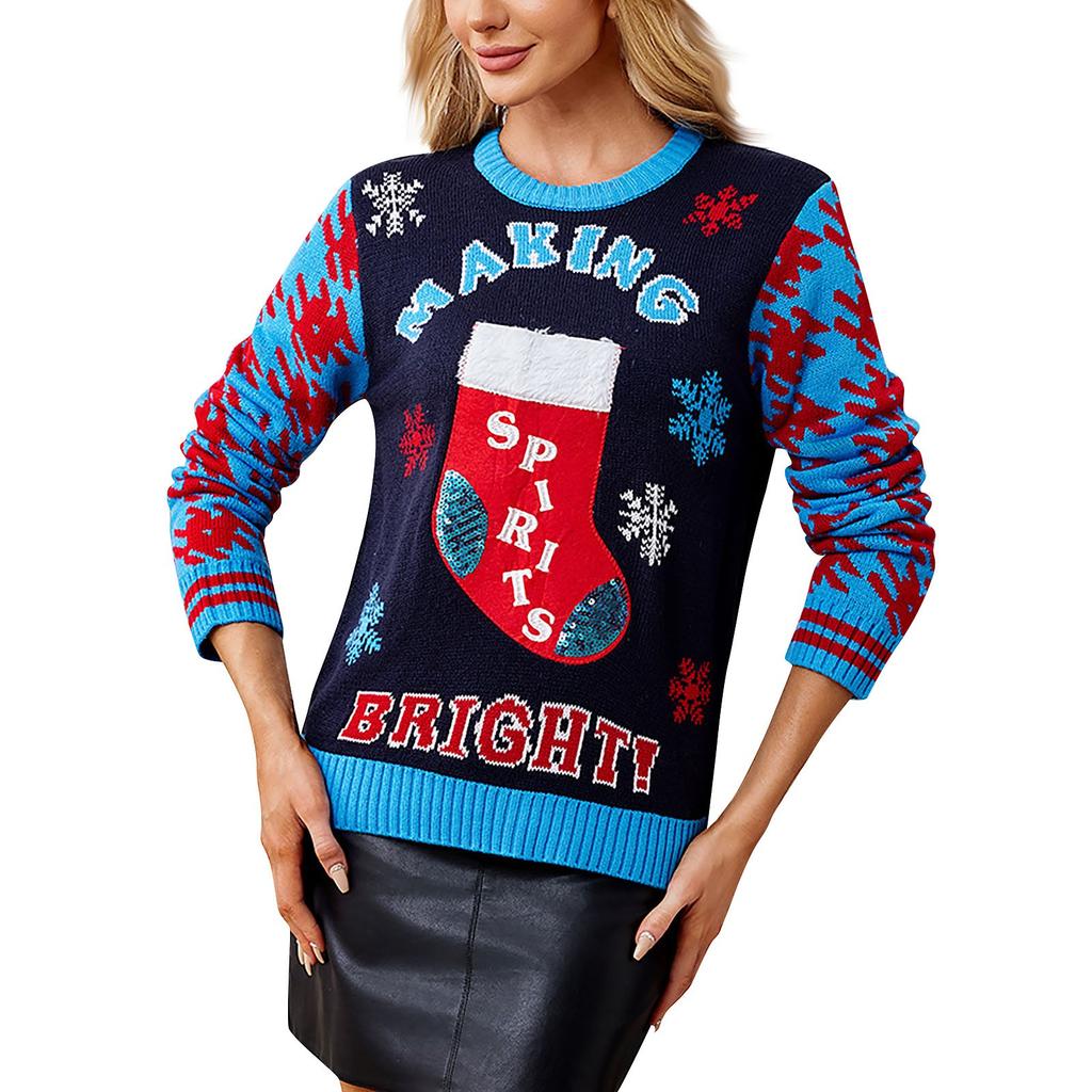 Женская мода Красный Санта-Клаус Длинный рукав Круглый вырез свитер