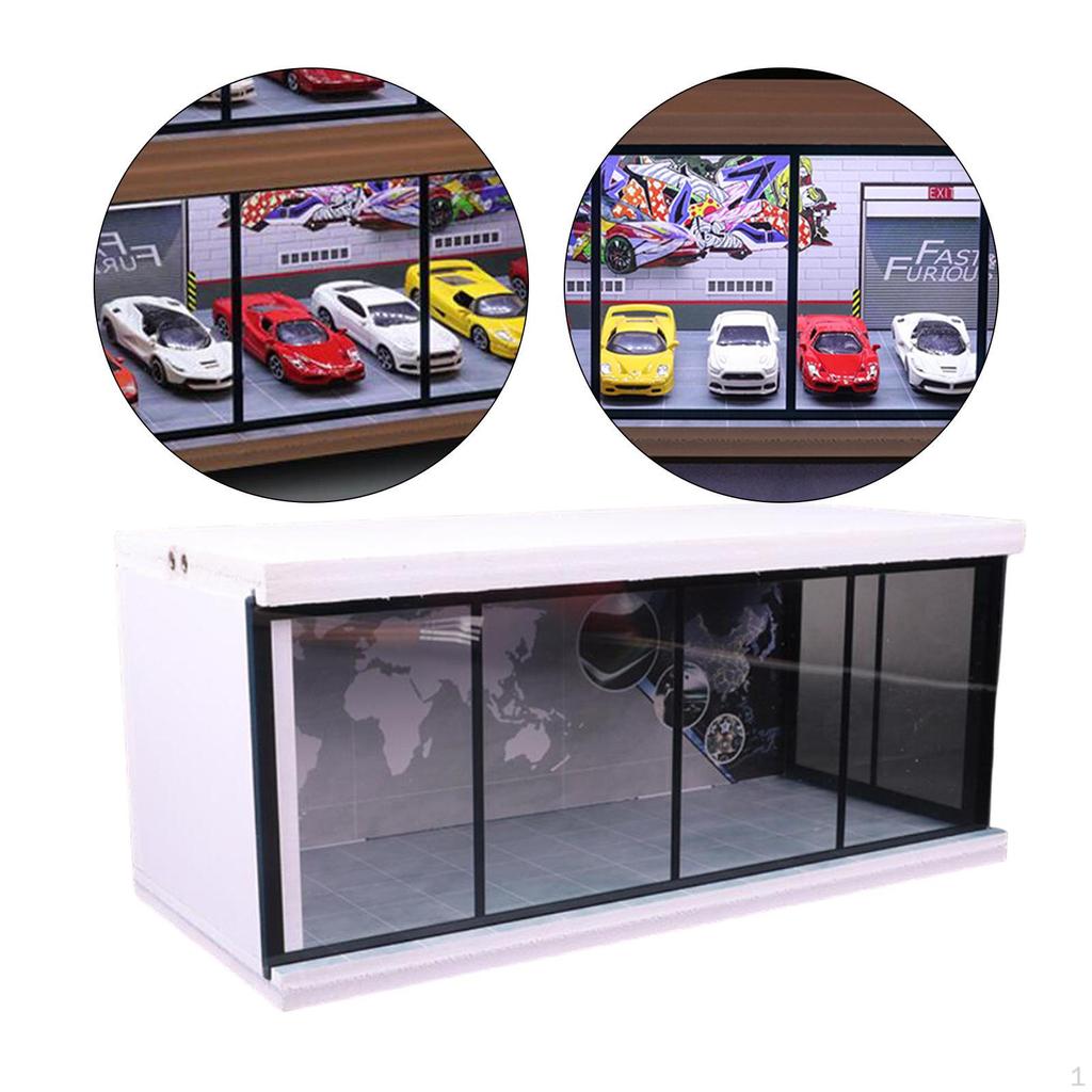 1:64 Коллекционная витрина для парковки, Встроенная светодиодная защита для литых автомобилей для куклы