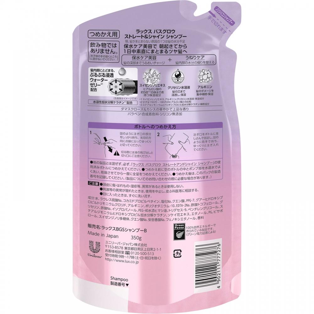 Пожалуйста, используйте пустые бутылки от шампуня "Lux Buzz Glow Straight and Shine" для повторного наполнения этим продуктом, не смешивая его с другими продуктами.. Обязательно тщательно промойте внутреннюю часть пустой бутылки и помповый механизм водопроводной водой и высушите перед тем, как залить все содержимое сразу.. После заправки запишите номер партии этой упаковки. (Эта информация может потребоваться для запросов о продукте.)