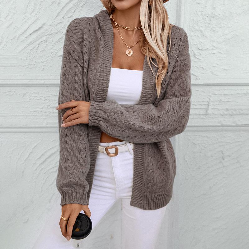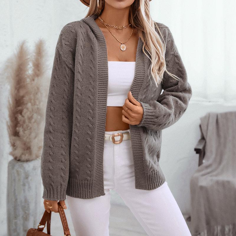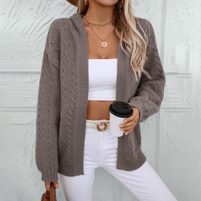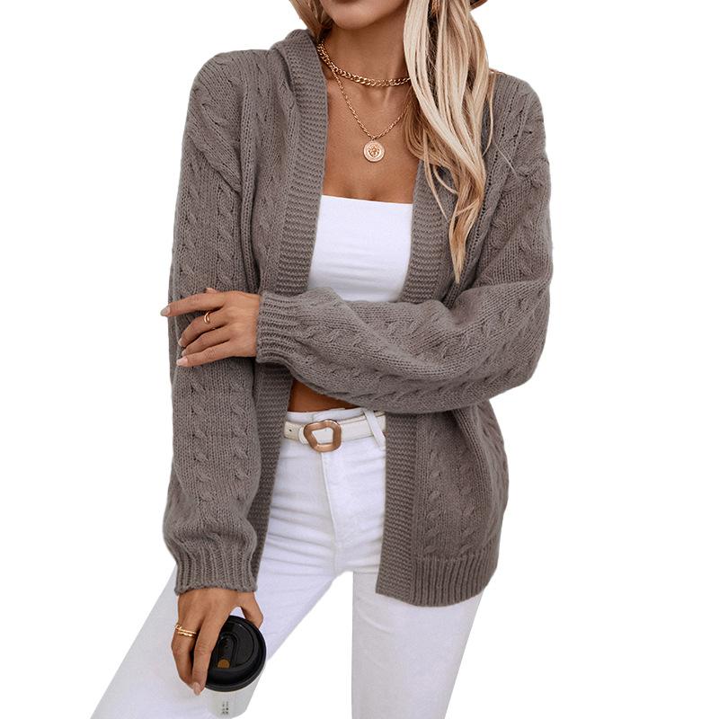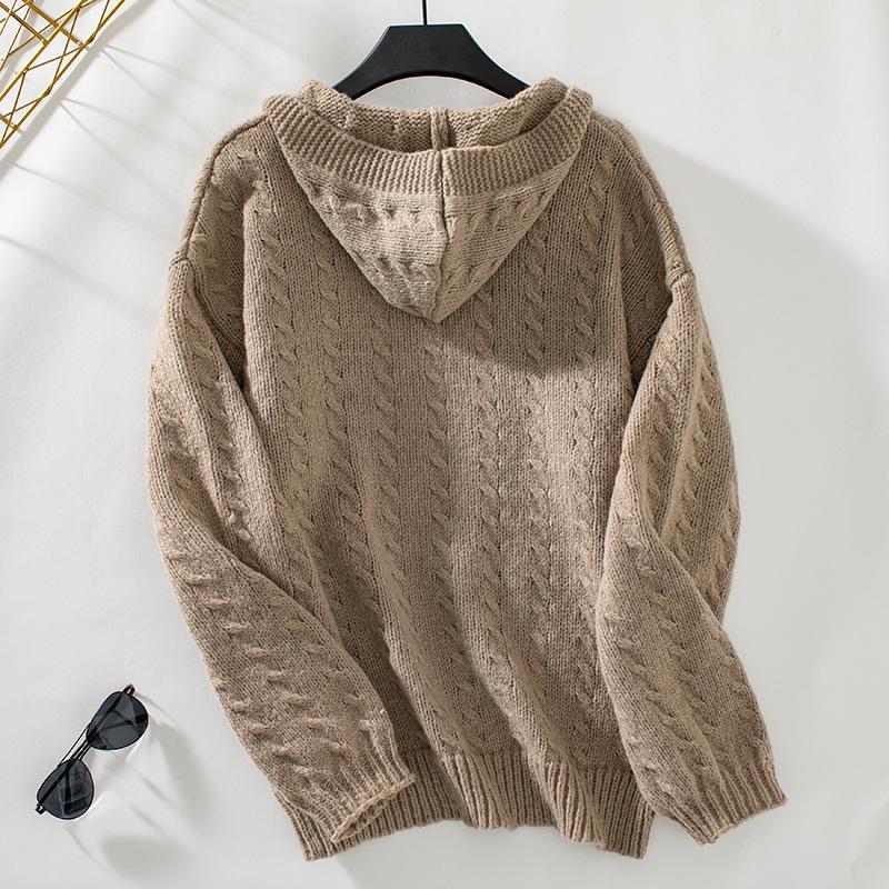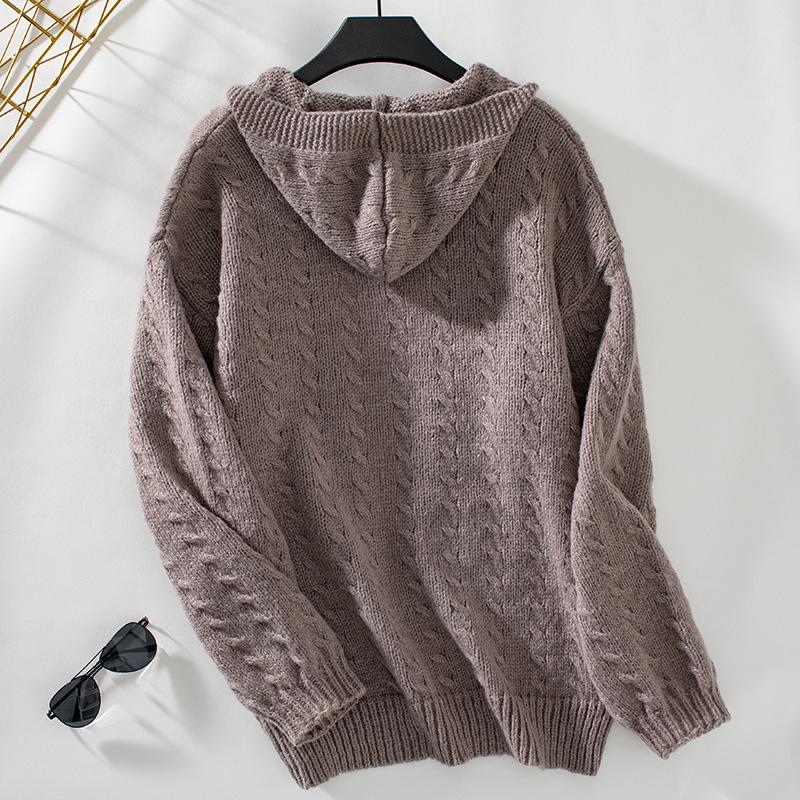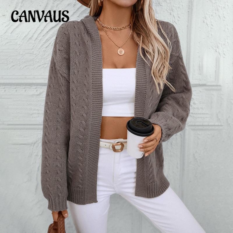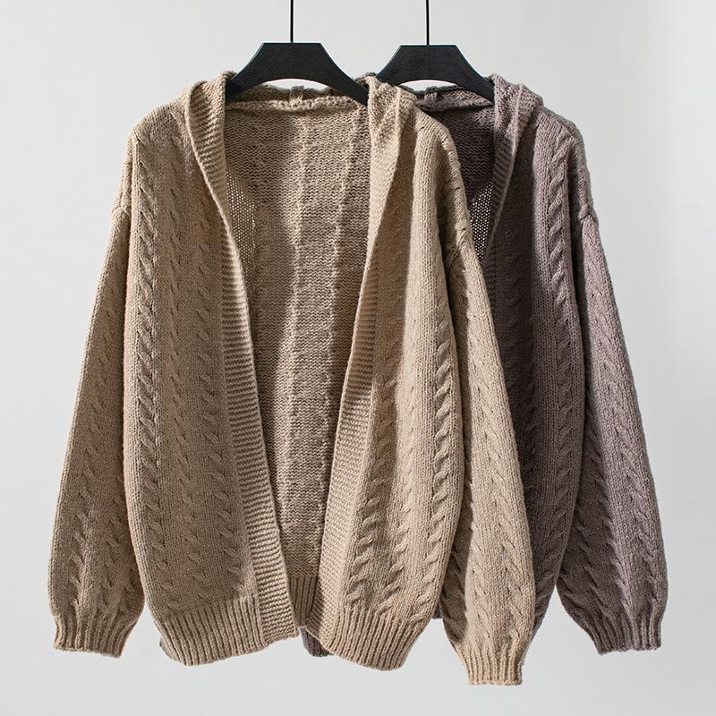 Женский вязаный кардиган больших размеров, однотонный, свободный, с капюшоном, свитер-перекрутка, осенне-зимний