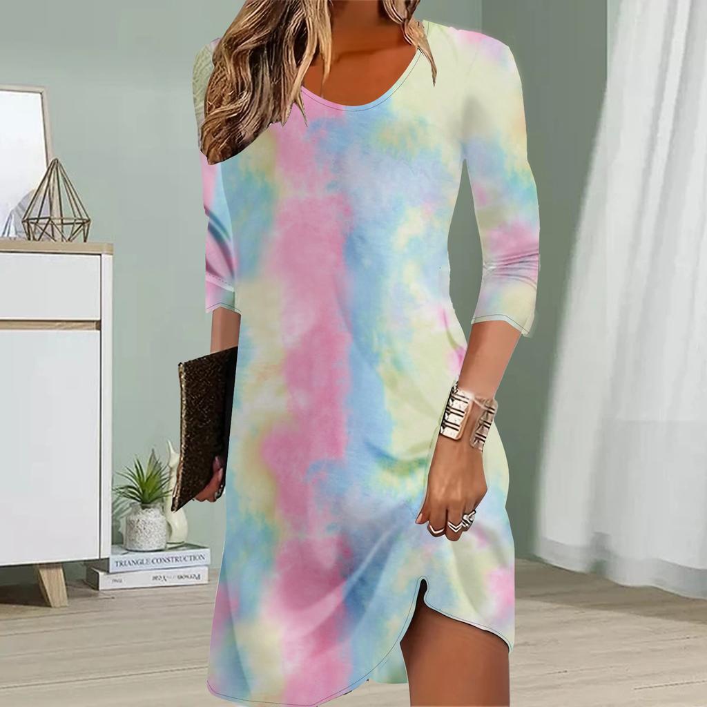 Женское повседневное платье осеннее платье с принтом Dyestuff для женщин с круглым вырезом и коротким рукавом платье размера плюс