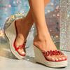Женские сандалии сексуальные соломенные пеньковые веревки простые покатые каблуки водонепроницаемые тележка модель горный хрусталь жгут LFD-11013-10