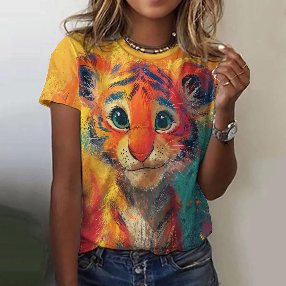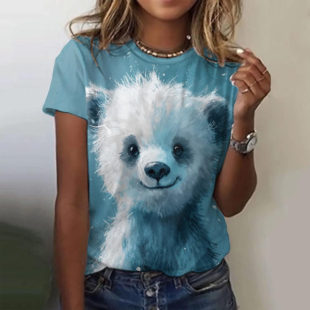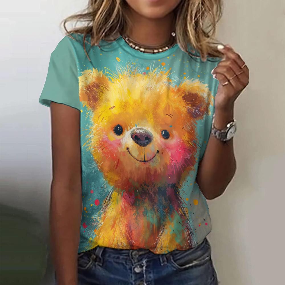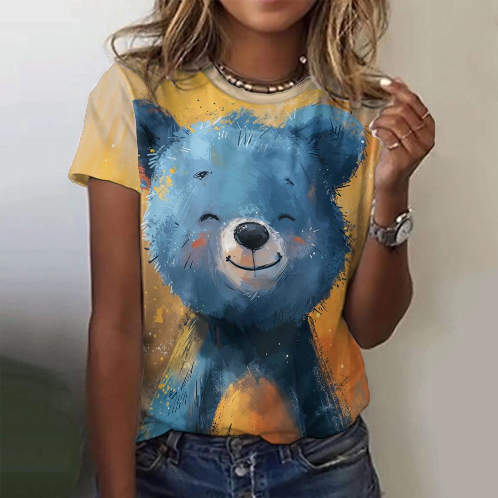 Милые футболки с мультяшным принтом животных, женские футболки Kawaii, модные повседневные топы с коротким рукавом, пуловеры, летняя свободная женская одежда