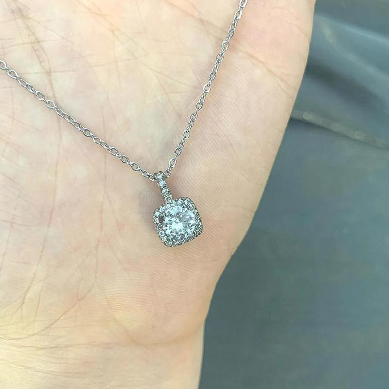 Квадратное бриллиантовое ожерелье Женственность Ниша Дизайн Смысл Нержавеющая сталь Простая геометрическая циркониевая ключичная цепочка