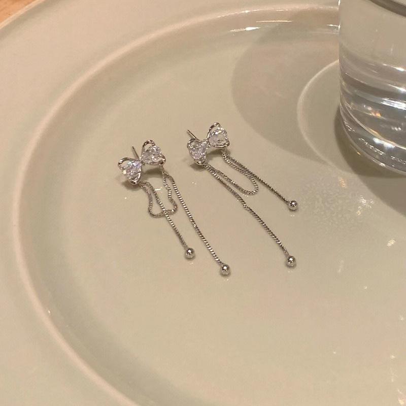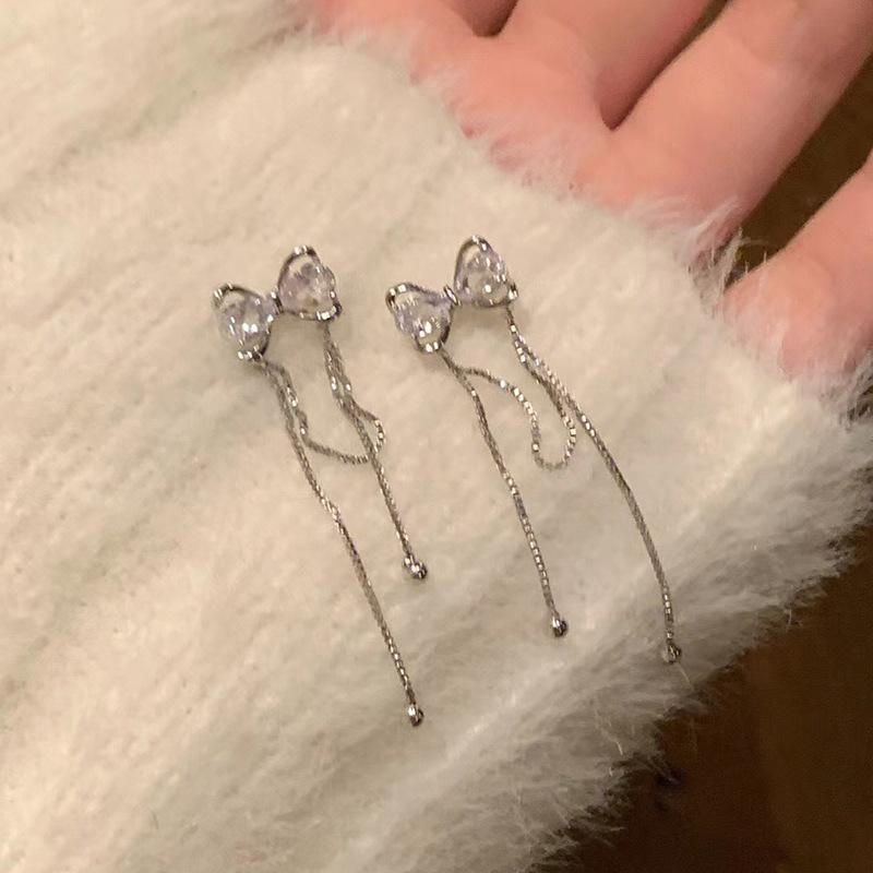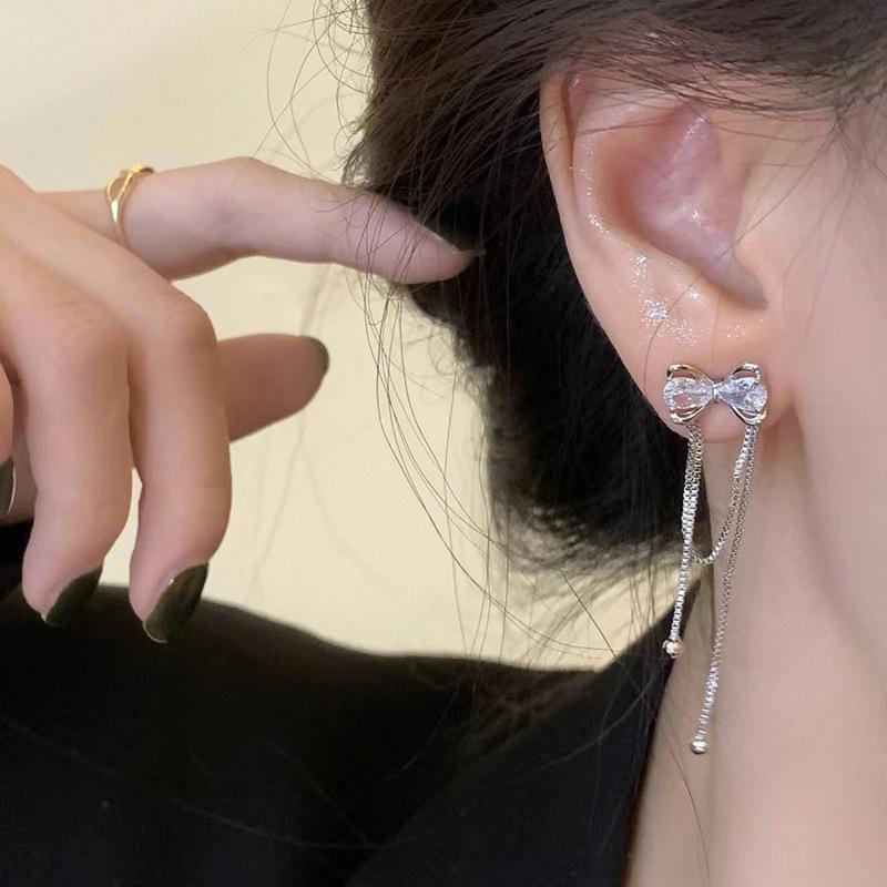 Серьги-гвоздики в форме банта Женские серьги Niche Design Sense Fashion Temperament для осени и зимы с бахромой из циркония