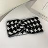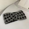 Винтажная элегантная широкая повязка на голову с узором «гусиная лапка», шикарная спортивная теплая повязка на голову для женщин, аксессуар для волос с перекрестным узлом