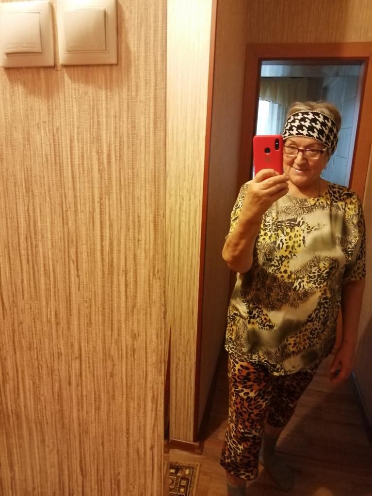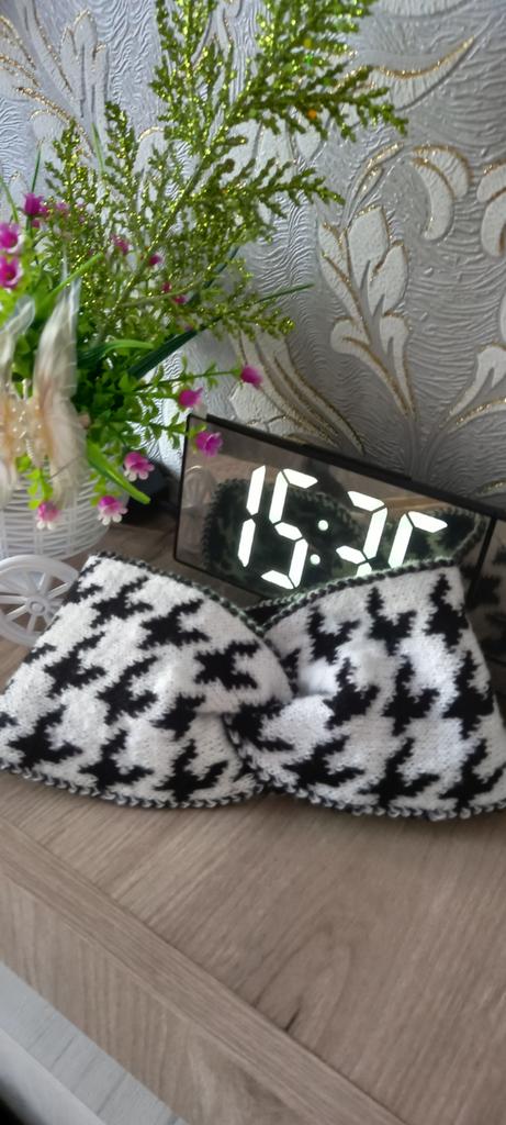 Повязка из плотного трикотажа с узором " гусиные лапки " понравилась. Она односторонняя. У меня - белая. Но подойдёт лишь до 56 размера головы . На мой объём 56 см села очень туго.