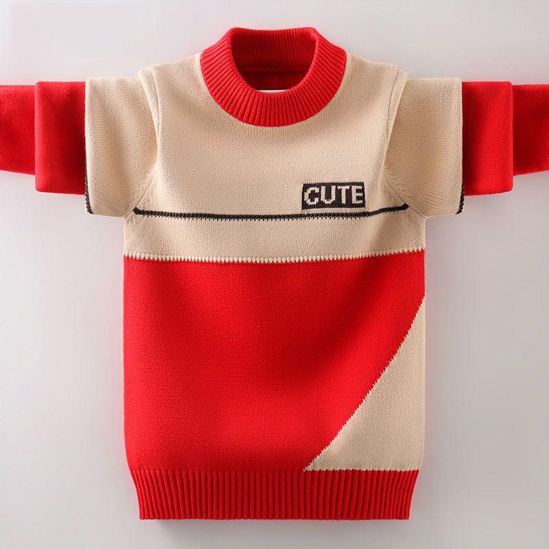 Детский вязаный свитер с круглым вырезом, осенне-зимний свитер для мальчиков, модный корейский вариант, свитер с подходящим цветом