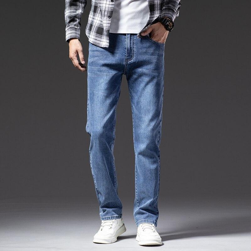 Мужские джинсы деловые, обычные, прямые, полной длины, повседневные, джинсовые брюки, эластичные, эластичные, из ткани стрейч — купить товар онлайн с бесплатной доставкой по всему миру!