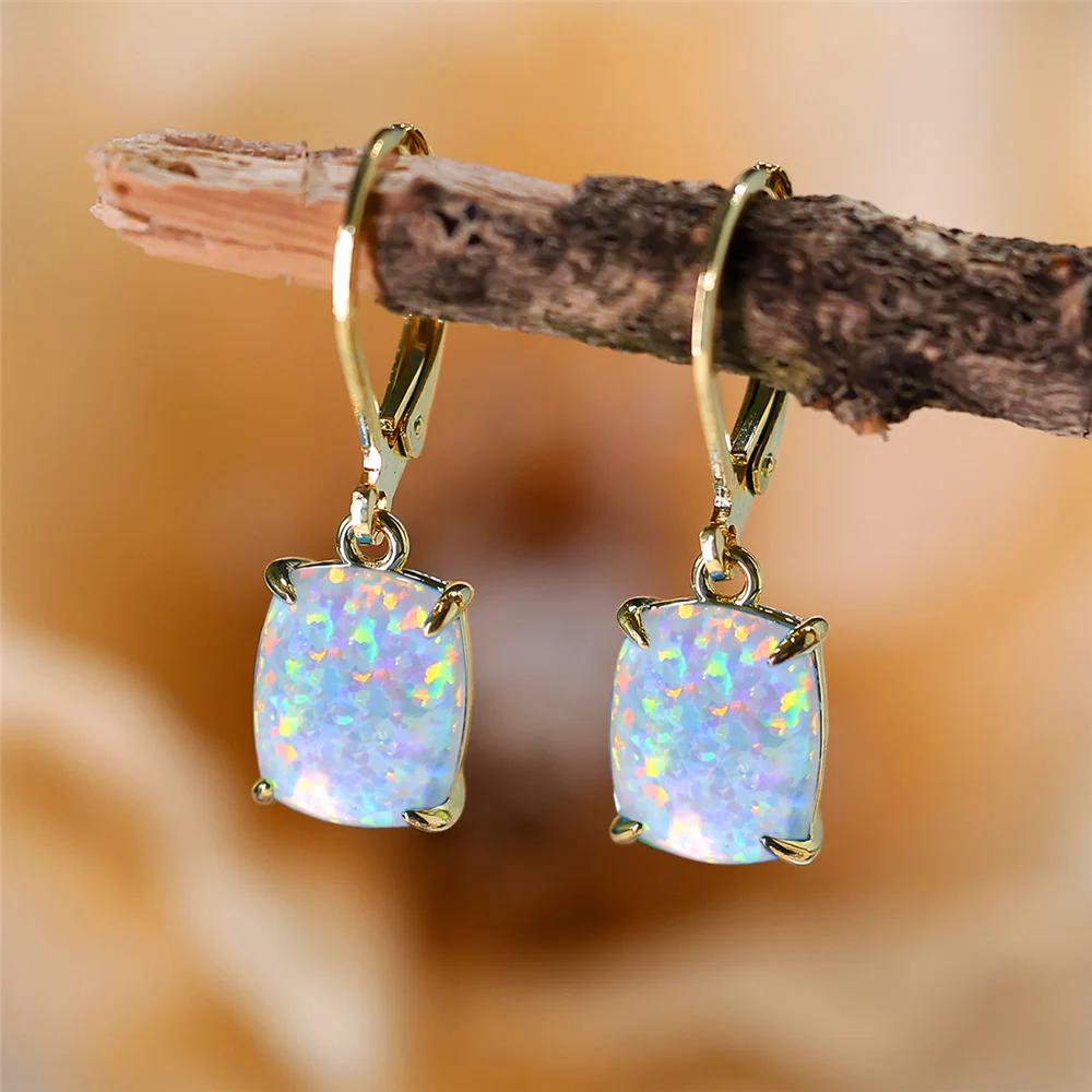 Серьги-подвески из белого и синего огненного опала для женщин, ювелирные изделия в стиле бохо, серебряные, золотистые, цветные серьги-подвески