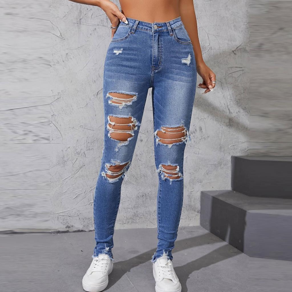 Мода для девочек, рваные узкие повседневные модные узкие брюки, джинсы