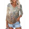Женская футболка Футболка с принтом Рукав 3/4 Повседневные Выходные Мода Классический V-образный вырез Обычный Топ