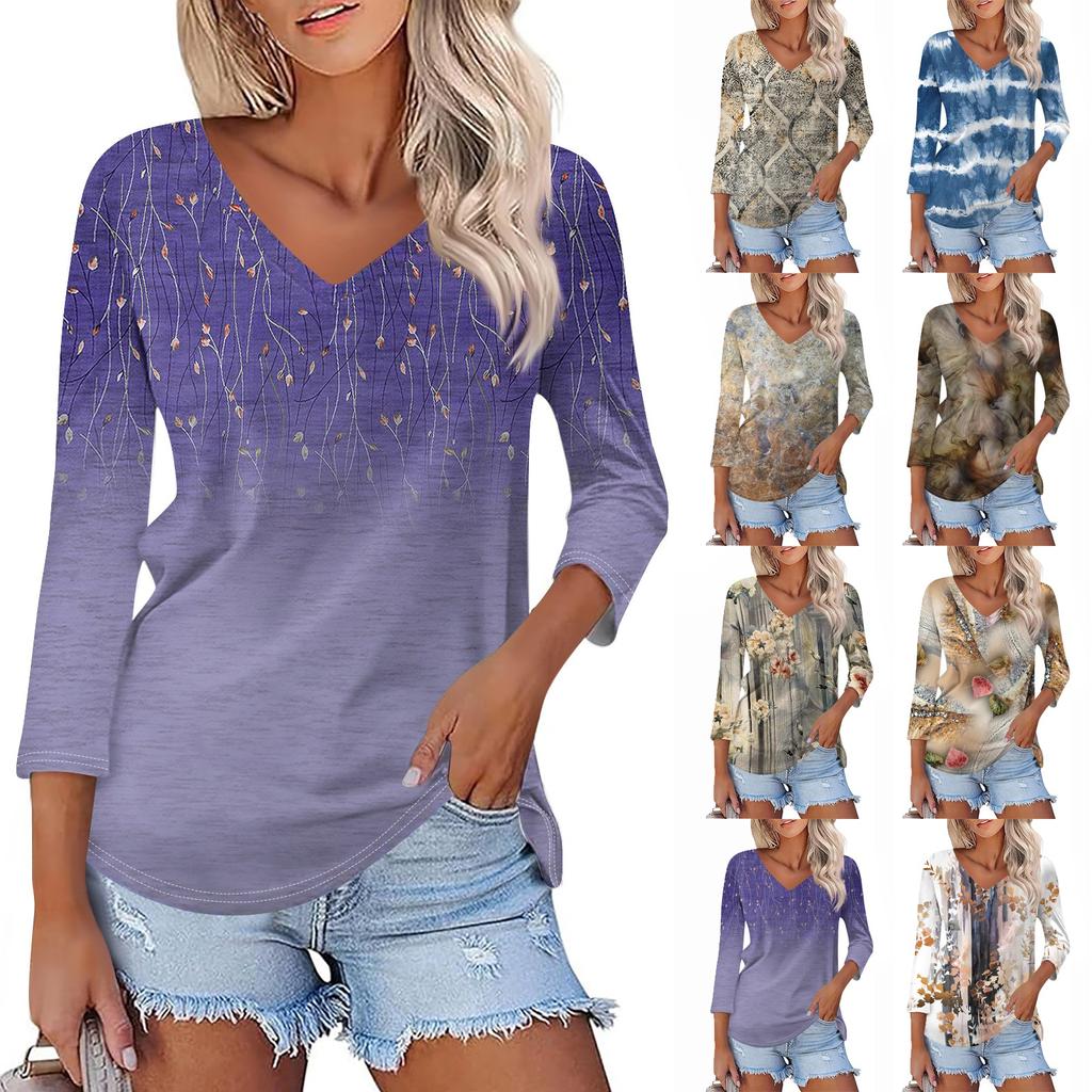 Женская футболка Футболка с принтом Рукав 3/4 Повседневные Выходные Мода Классический V-образный вырез Обычный Топ — купить товар онлайн с бесплатной доставкой до всему миру!