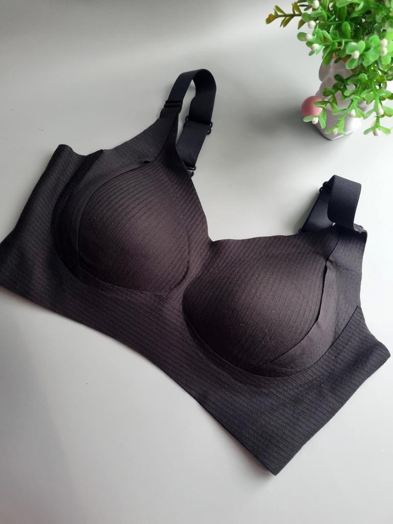 Удобный мягкий бюстгалтер без косточек выполнен из трикотажной ткани в рубчик. Широкие лямки не врезаются в плечи. Они регулируются и съемные сзади, благодаря чему бретели можно носить тремя вариантами: на плечи, перекрестно на спине или через шею. Несколько вариантов крепления бретелей позволяют носить бюст с топами с разнообразными вырезами. Объем пояса бюста тянется, за счет этого бюстгальтер абсолютно не чувствуется на теле и не врезается! На спинке 4 ряда крючков. Съемные поролоновые вставки,тонкие и незаментные под одеждой придают форму груди. Бюстгалтер подойдет для беременных и кормящих мам,так же девочкам подросткам, всем женщинам в качестве домашнего комфортного бюстгалтера. Качество исполнения бюста - идеальное. Без лишних ниток и постороннего запаха, абсолютно симметричный. Размерная таблица в описании товара верная. Объем под грудью выбрать можно, а вот размер чашки нет. Бюст не подойдёт для груди размером больше С(3). Идеально сядет на женщину с большим обхватом грудной клетки и чашкой B (2). На мне размер XL, обычно ношу размер 75C. По таблице подходит на ОПГ - 78-82, ОГ 90-97 см. Мои объёмы: под грудью 80, грудь 98 см, чашка С (3). Бюст сел свободно по поясу, грудь в нем поместилась, но с трудом, возможно при резких движениях будет высказывать вниз. Буду носить бюст в качестве домашнего. Мой размер комфортно сядет на девушек с большим объёмом под грудью. Доставка около 3 недель. Упаковка в фирменный зип-пакет. Бюст был на подложке. Рекомендую 🖤
