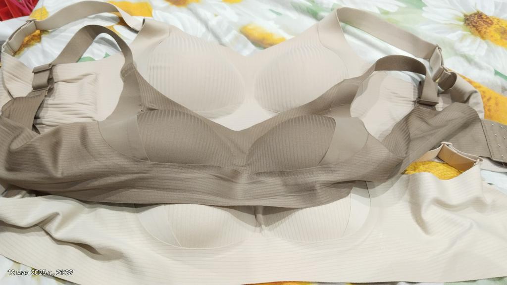Очень сильно маломерит, заказала 3XL для мамы, в итоге он больше подошёл мне хотя покупала в специализированном магазине бюстгальтер такого же формата только размер XL и даже 3XL - чашечки поменьше моего 😔 Я при заказе понимала что будет качество ткани совсем другое, это не так пугало меня за такую цену ну почему размерная сетка-то не соответствует от слова совсем? На фото видно что бюстгальтеры которые я заказывала в joom намного меньше первого... А первый размера XL (тот что я покупала в магазине) те которые заказала тоже XL и 3XL, но они практически одинаковые и оооочень сильно маломерят А вот внешне практически один в один, только качество материалов конечно уступает и поэтому форму не держит так как хотелось бы Короче, на небольшую грудь советую, у меня размер D, поэтому не комфортно