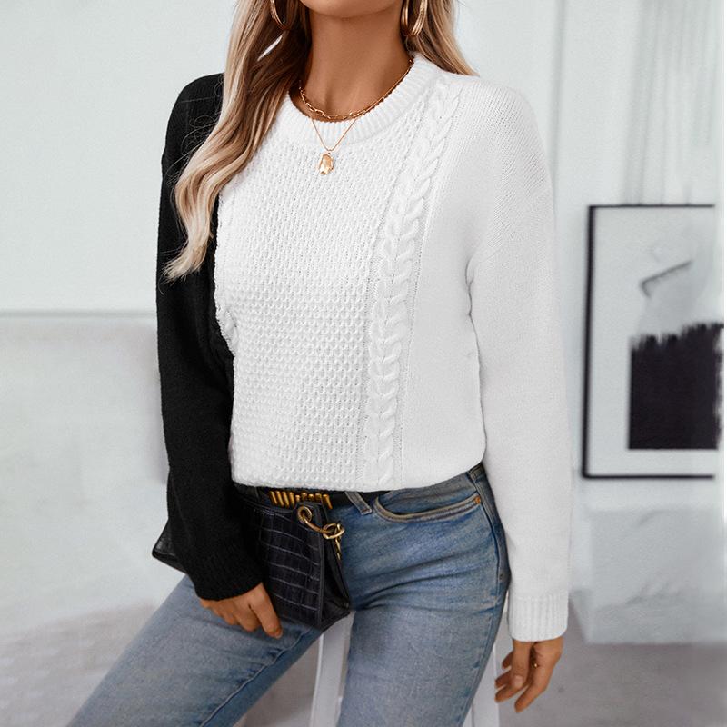 2024 Европа и Америка осень и зима новый сращивание контрастный круглый вырез свитер винтажный свободный вязаный пуловер жареный тесто переплетения свитер женский