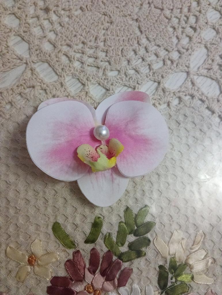 Заколка в виде цветка орхидеи🌸Пришло все целое🌸С обратной стороны зажим🌸Можно украсить праздничную прическу для девочки🌸Благодарю магазин и джумчик 🌸