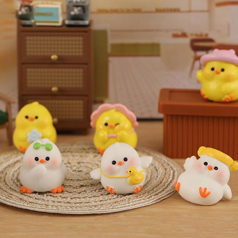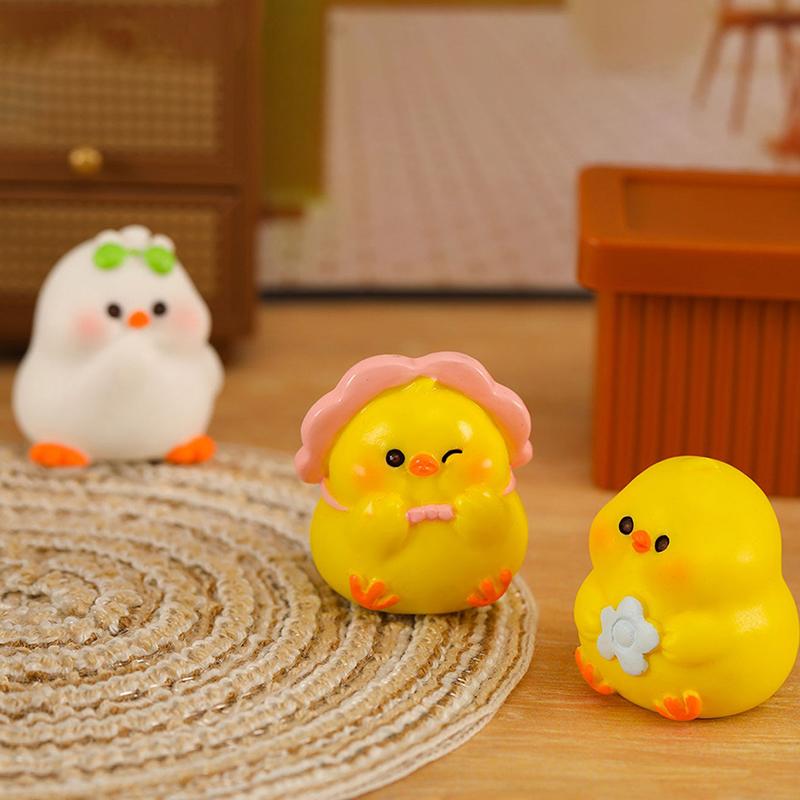 Мультяшный маленький толстый цыпленок Мини-украшение Фигурка животного Микропейзаж Кукольный домик Миниатюрная игрушечная машинка Орнамент