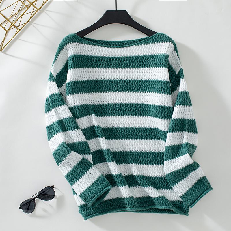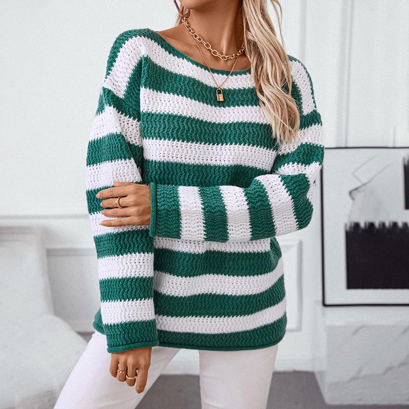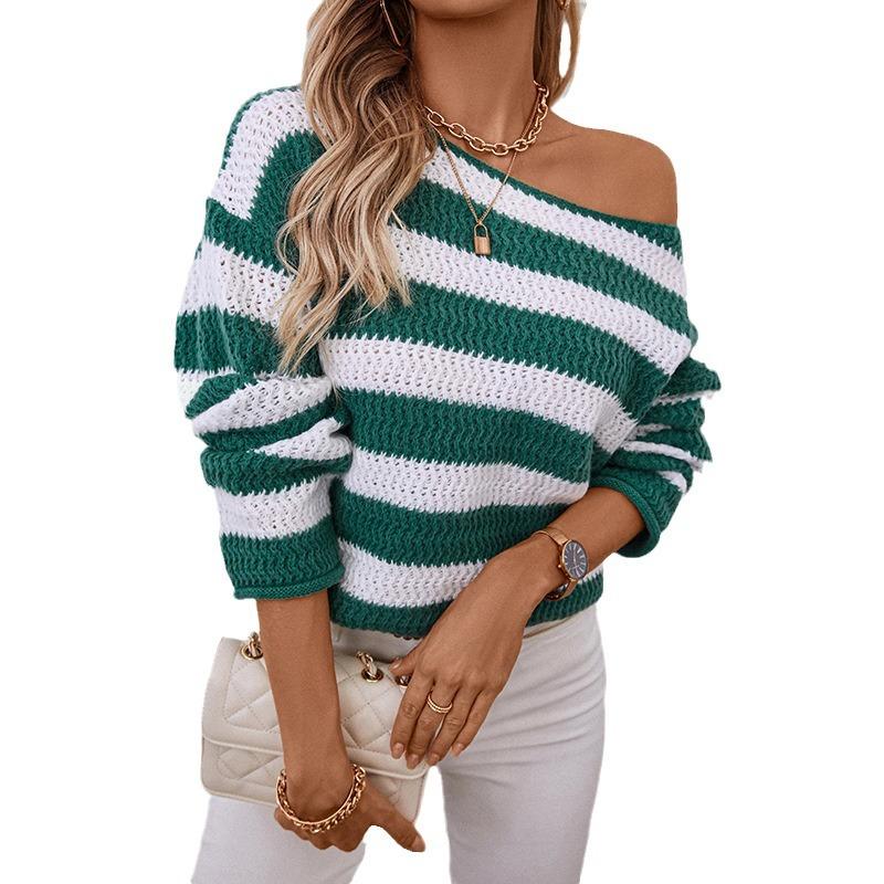 2024 Европейский и Американский Осень И Зима Новый Свободный Повседневный Один Вырез Длинные Рукава Вязаный Свитер Полосатый Свитер Для Женщин