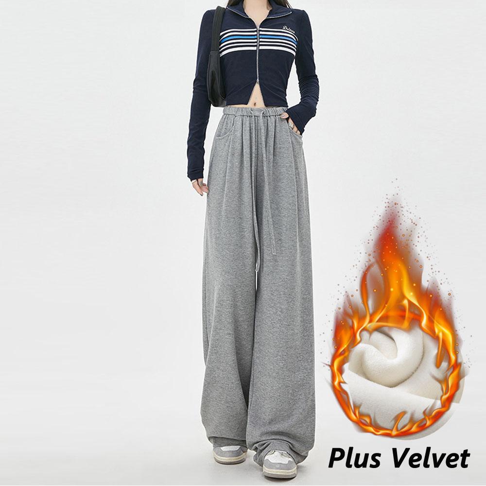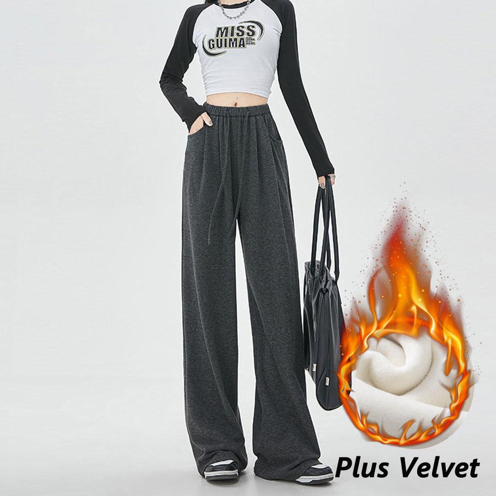 Женская зимняя осенняя одежда Плюс бархатные толстые брюки с высокой талией Повседневные широкие брюки для женщин Уличная модная одежда