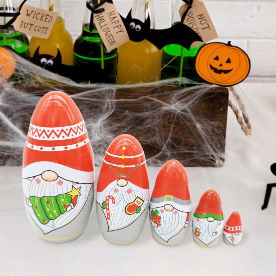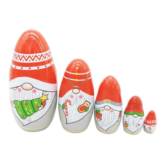 Представляем гнома-матрешку Санта, яркое и любимое дополнение к любому пространству. Эти штабелируемые игрушки из мультфильмов изготовлены из натурального дерева и расписаны экологически чистой краской на водной основе, что гарантирует безопасность для всех.. Наслаждайтесь радостью открытия, когда вы откроете для себя пять уникальных размеров набора, каждый из которых плотно вложен в другой..