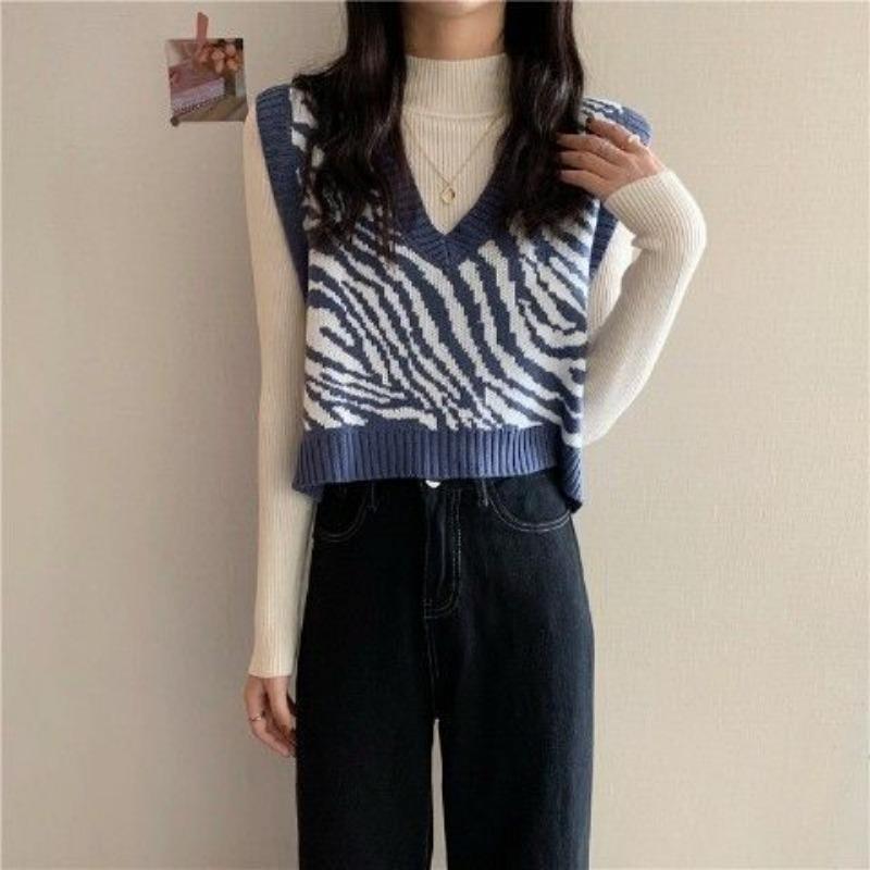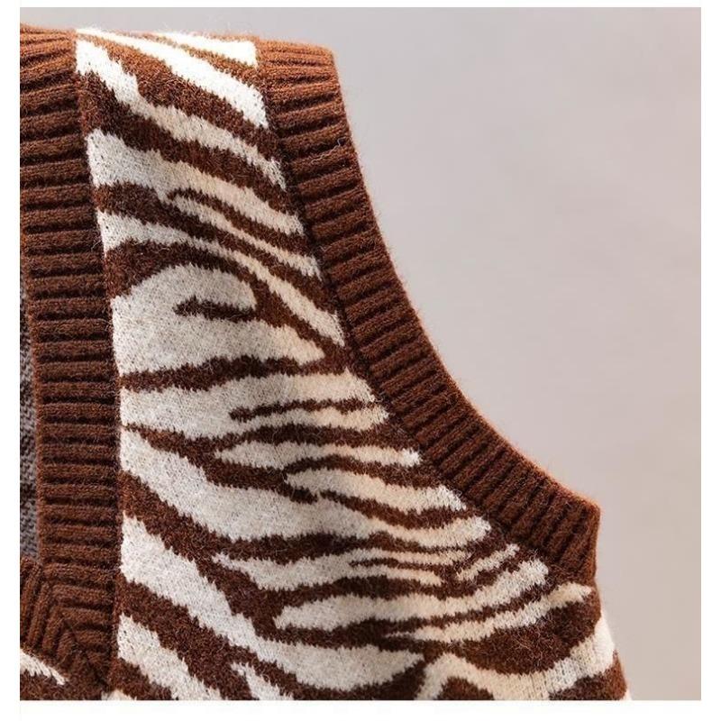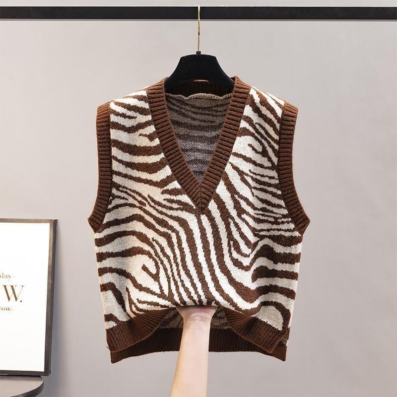 Женский вязаный жилет осенний женский свитер с V-образным вырезом осенний стиль зебровый принт свободный и модный корейский вариант
