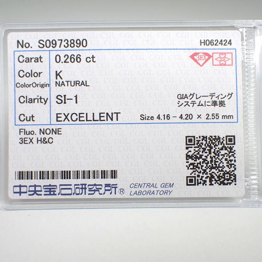 [Новый] Бриллиант россыпью 0,266 карата K/SI-1/3EX/H&C со средней сортировкой сокровищ [g315-30]