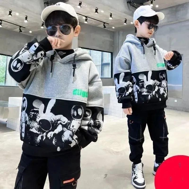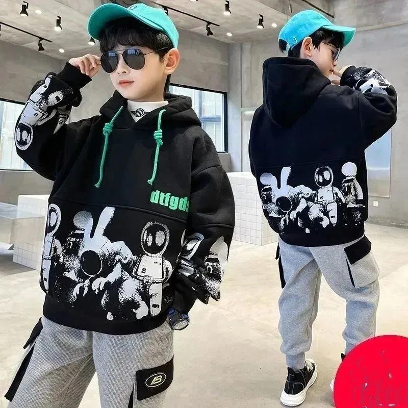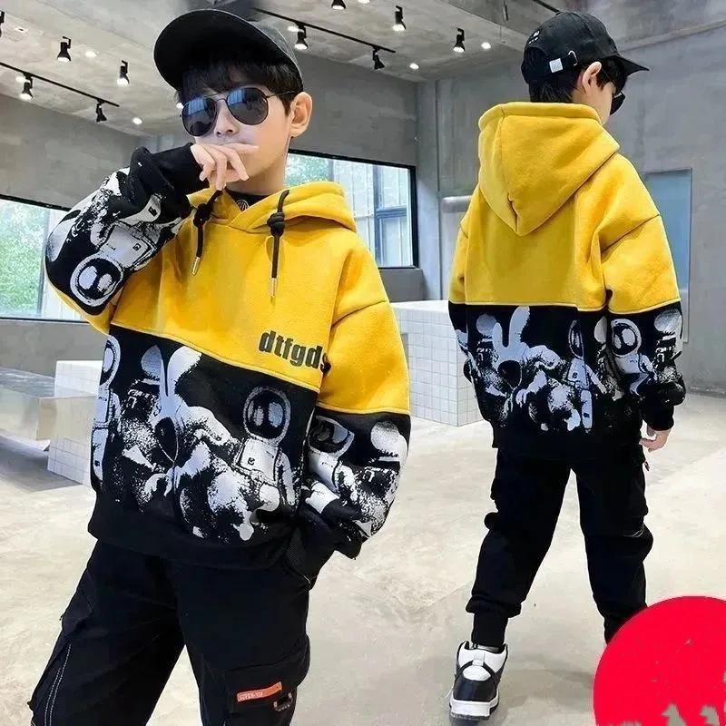 CUHK Детская весна-осень 4-14 лет Мальчики Пальто с капюшоном Повседневная толстовка Свободная хлопковая одежда с длинным рукавом