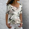 Футболка с цветочным принтом 3D, летняя женская футболка с нестандартным V-образным вырезом, ретро-футболка в стиле Харадзюку с коротким рукавом, свободные топы Y2k