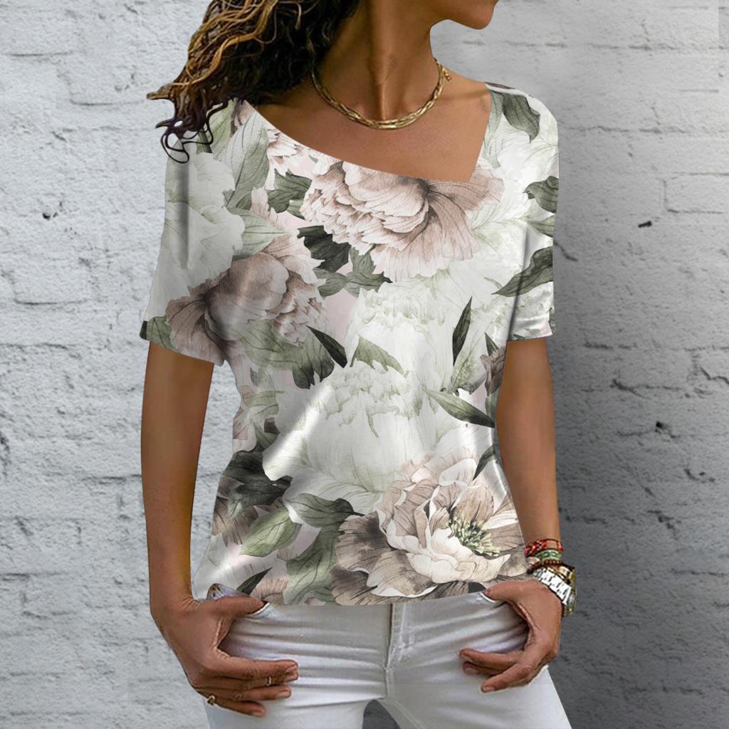Футболка с цветочным принтом 3D, летняя женская футболка с нестандартным V-образным вырезом, ретро-футболка в стиле Харадзюку с коротким рукавом, свободные топы Y2k — купить товар онлайн с бесплатной доставкой по всему миру!